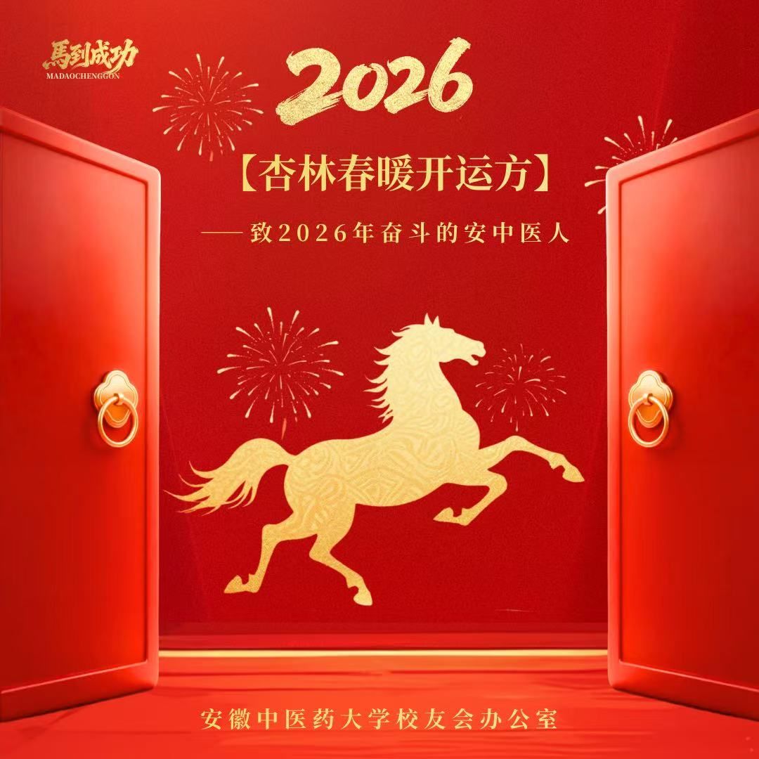 新岁启封,万象更新。为传承岐黄精神,凝聚校友力量,传递母校关怀,校友办特拟杏林春暖开运方,特以中医药文化为底蕴,以中医药经典配伍为灵感,以一方良药寄寓新春美好期盼,致敬每一位坚守初心、笃行不怠的校友。回望征程,广大校友在医疗卫生、教育科研、产业发展、社会服务等各个领域深耕不辍、担当作为,以仁心仁术守护人民健康,以实干实绩书写时代担当,为中医药事业传承创新发展注入不竭动力。新的一年,站在崭新起点,我们将继续同心同向、...