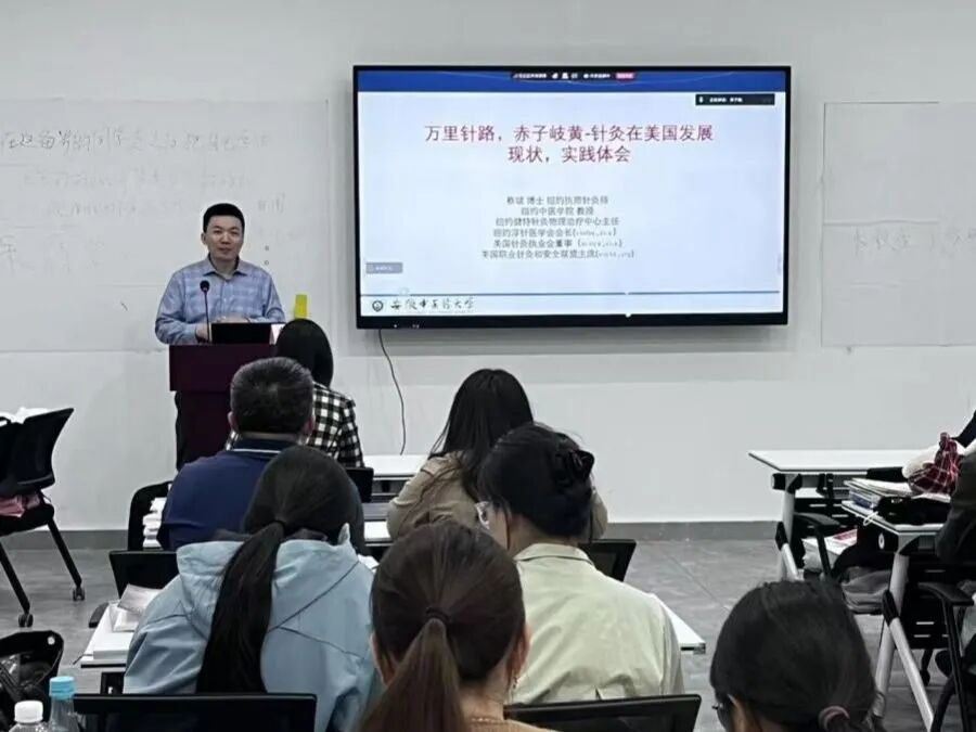 4月8日下午,针灸推拿学院“华佗大讲堂”系列学术讲座在学院一楼元化草堂举行。纽约中医学院教授、美国职业针灸和安全联盟主席、2001届针灸学专业校友蔡斌教授应邀作题为《万里针路,赤子岐黄——针灸在美国发展现状、实践体会》的讲座。讲座由学院党委书记唐巍主持,院长蔡荣林、党委副书记李海燕、副院长吴子建出席,学院青年教师及研究生、本科生代表到场聆听。讲座中,蔡斌以“我从哪里来”“美国针灸走到了什么阶段”“我想把什么送给在校的学弟学妹们”...