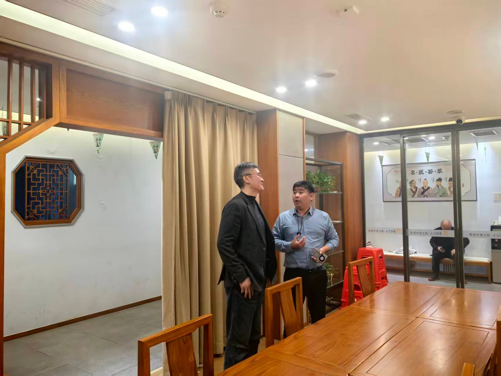 在润之堂中医馆,方晓一行与我校2007级校友、运营经理范朗亲切交谈,实地了解中医馆经营现状和发展需求,并就进一步加强合作深入交流。