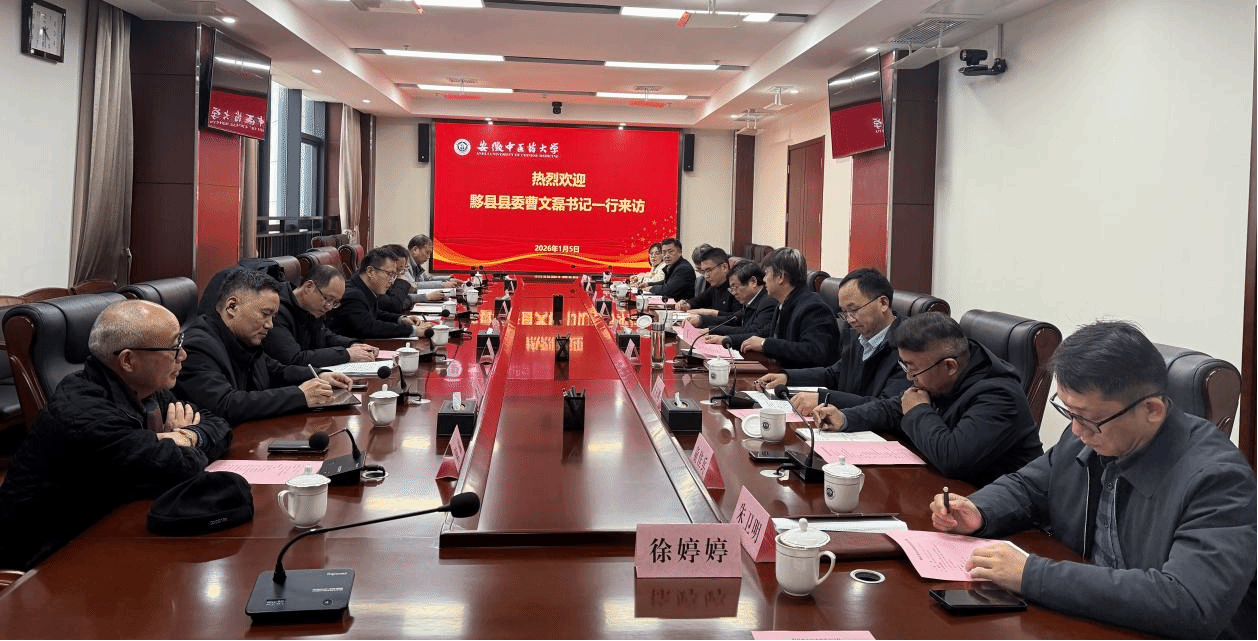 1月5日下午,黟县县委书记曹文磊率队来访我校,学校党委书记谢瑞瑾出席会议并讲话,校党委常委、副校长、第一附属医院党委书记聂久胜主持会议。校党政办公室、科技处、社会合作处、继续教育学院、资产经营有限公司、健康产业公司相关负责同志参加座谈。
