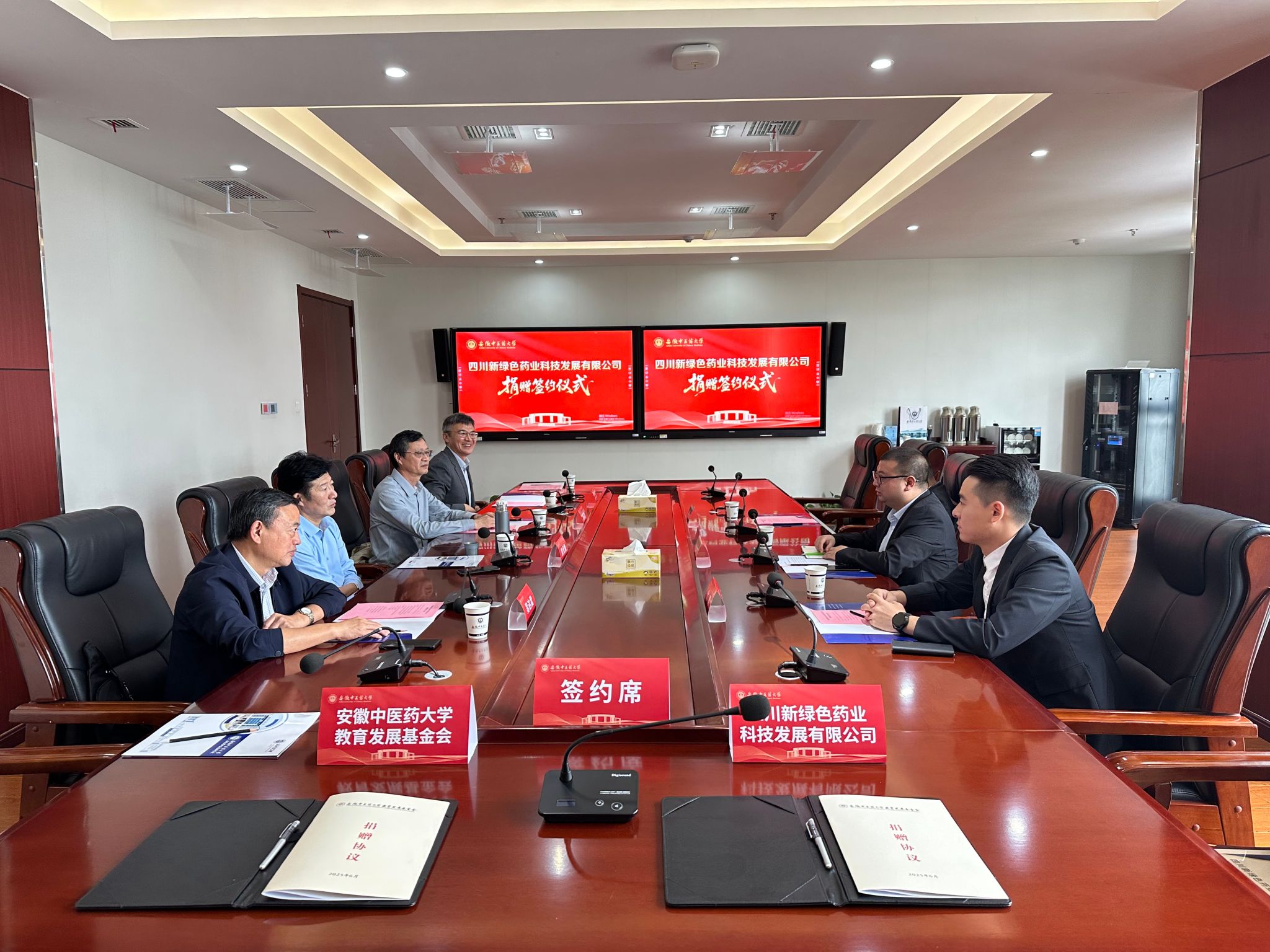 四川新绿色药业科技发展有限公司大区副总监鲜华齐在致辞中表示,此次捐赠,旨在全力支持安徽中医药大学教育事业发展,推动学校科研创新发展,促进学校学科建设及专业人才培养。他期待以此次捐赠为契机,开启四川新绿色药业科技发展有限公司与学校深度合作的新篇章,双方按照“协同发展、合作共赢”的原则,切实推动校企产学研融合目标的实现。为中医药临床科研项目研究贡献更多智慧和力量。
