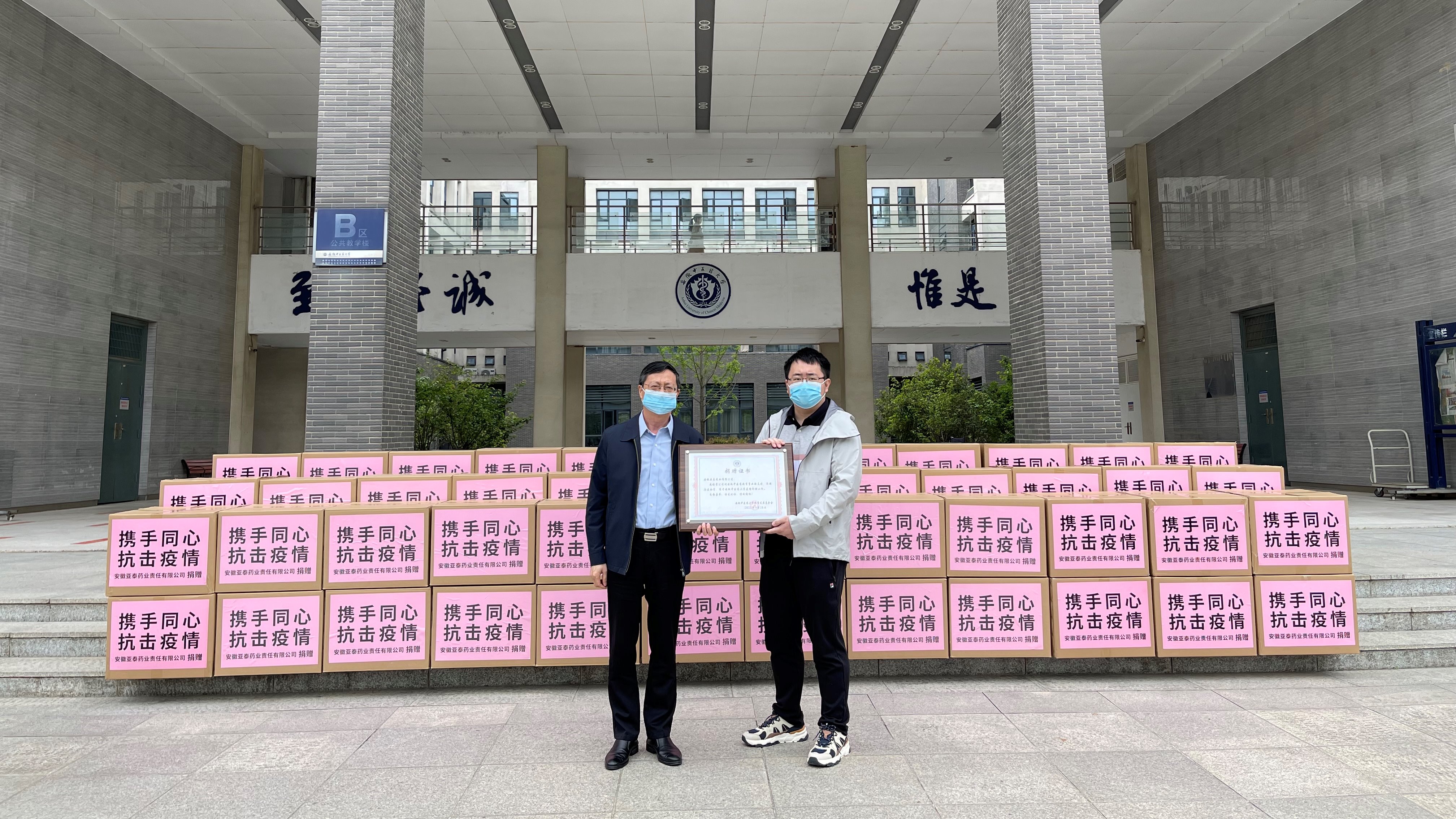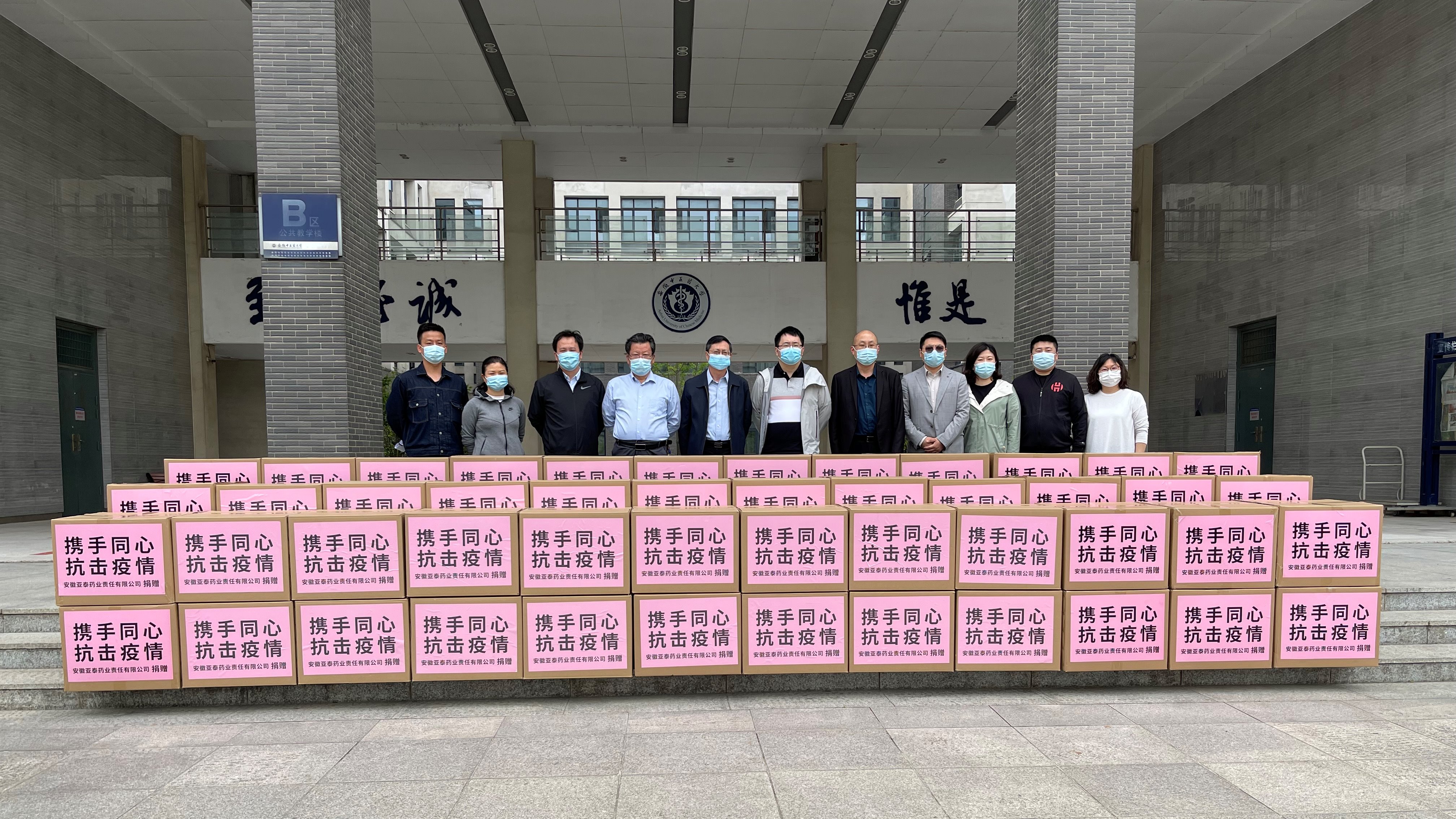 4月28日上午,安徽亚泰药业有限公司董事长王泽旭、销售部总监杨祖怡、合肥济生源饮片有限公司副总经理贺俊儒一行来学校教育发展基金会,捐赠75箱防疫中药颗粒剂及预防代茶饮,支持学校疫情防控工作。